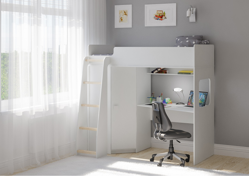 Учебная зона со столом под спальным местом открывает возможности для письменных работ,а также здесь удобно расположить ноутбук.