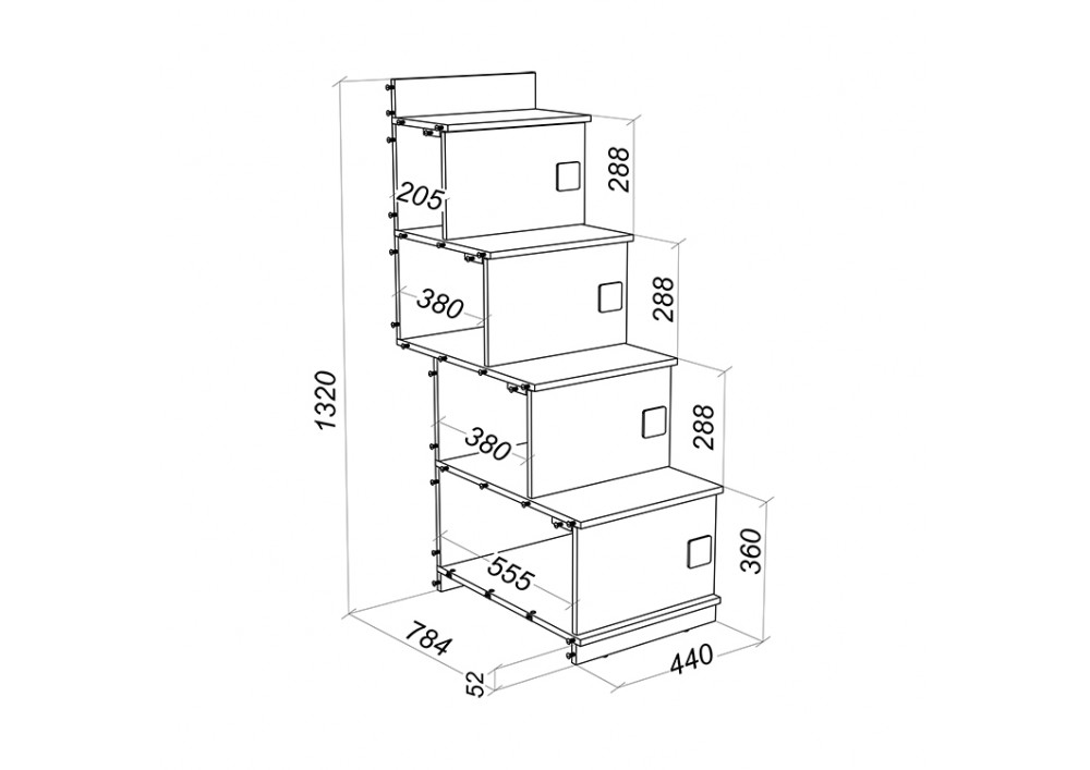 Лестница из 4 ступеней, предназначена для установки между 2-мя кроватями серии A,B,C,D,E,F.